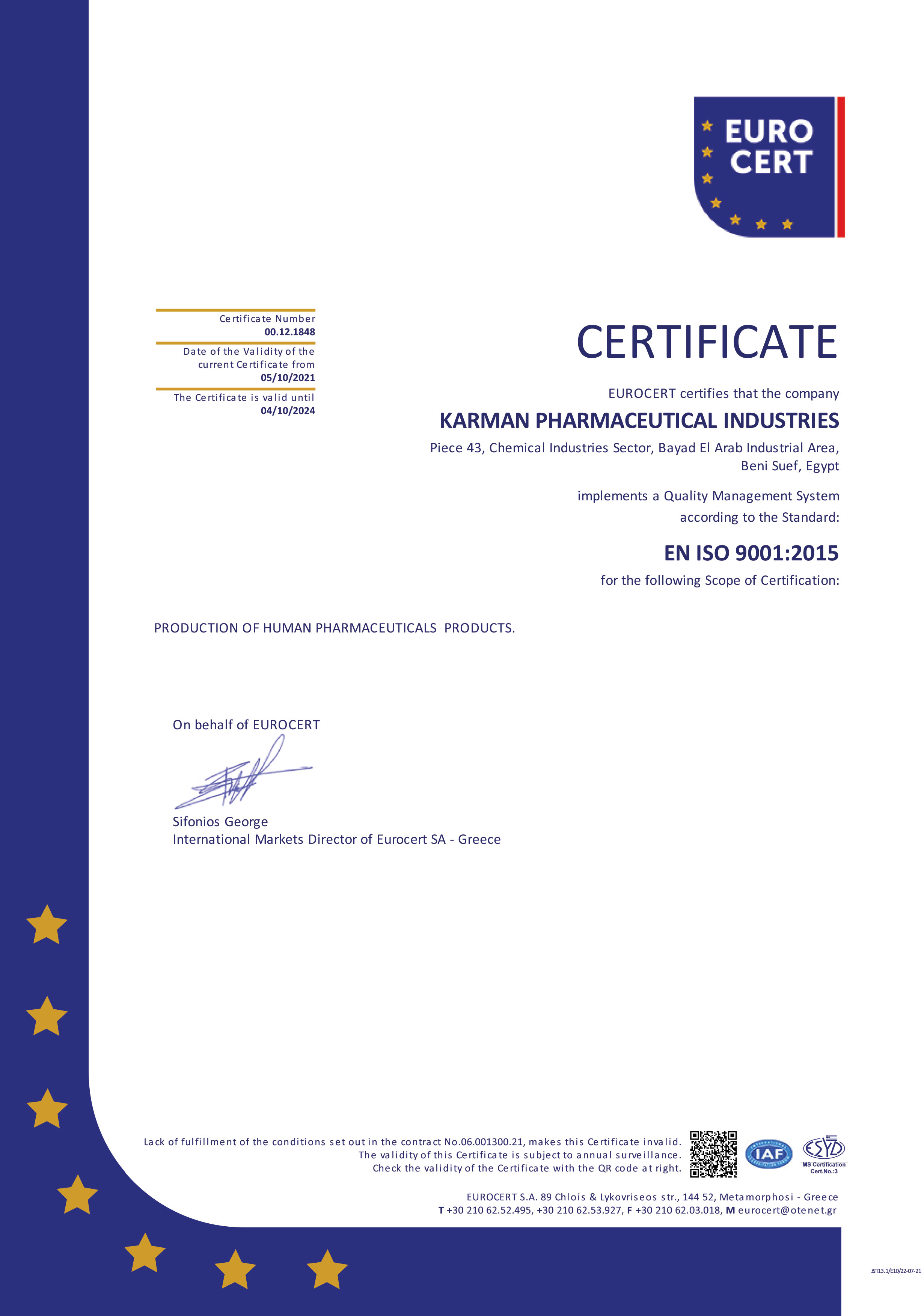 KARMAN has been built to the most up-to-date manufacturing facility complying with the recent cGMP guidelines, and FDA regulations.